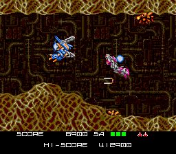 In addition to the substantial changes, there are several minor and even weird changes. Some bosses have different attack patterns and there are some different enemy placements in parts. For some reason, Stages 3 and 4 have been switched in the Super NES game, and the beginning of Stage 4 is a recoloring of the beginning of the arcade version’s third stage. Perhaps the most bizarre, after the final boss is defeated, the game just loops with no credits screen shown. There are no differences between the Super NES and Super Famicom versions of BlaZeon.