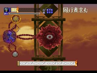 Shinrei Jusatsushi Taroumaru uses an atypical combat system, similar to Game Arts’ Alisia Dragoon. As the title implies, both attack enemies with their psychic powers. Floating in front of them is a targeting cursor, which will automatically lock onto the closest enemy, so all you need to do is jam the fire button to attack them with streams of energy. This is somewhat handy, because it allows you to attack enemies above or below you without having to jump to their level. On the other hand, the targeting cursor is extremely finicky. It has limited range, and it’s not always entirely clear when something is too far away to attack. Additionally, you don’t have any real control over which enemy is targeted. Most of the time, the screen is cluttered with bad guys, and since you can only attack a single enemy at a time, it makes certain areas feel pretty overwhelming. Many bosses also have multiple body parts that can be targeted, requiring that you cycle through them with the shoulder buttons. Only one of them is actually a weak point, so some of these can also be needlessly frustrating.