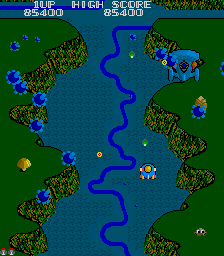 The other most innovative feature is its two-player mode. This is common nowadays, but it played a big role in its success at the time. Gradius and R-Type were both strictly single-player experiences, and most of its competition still relied on letting the two players take turns.